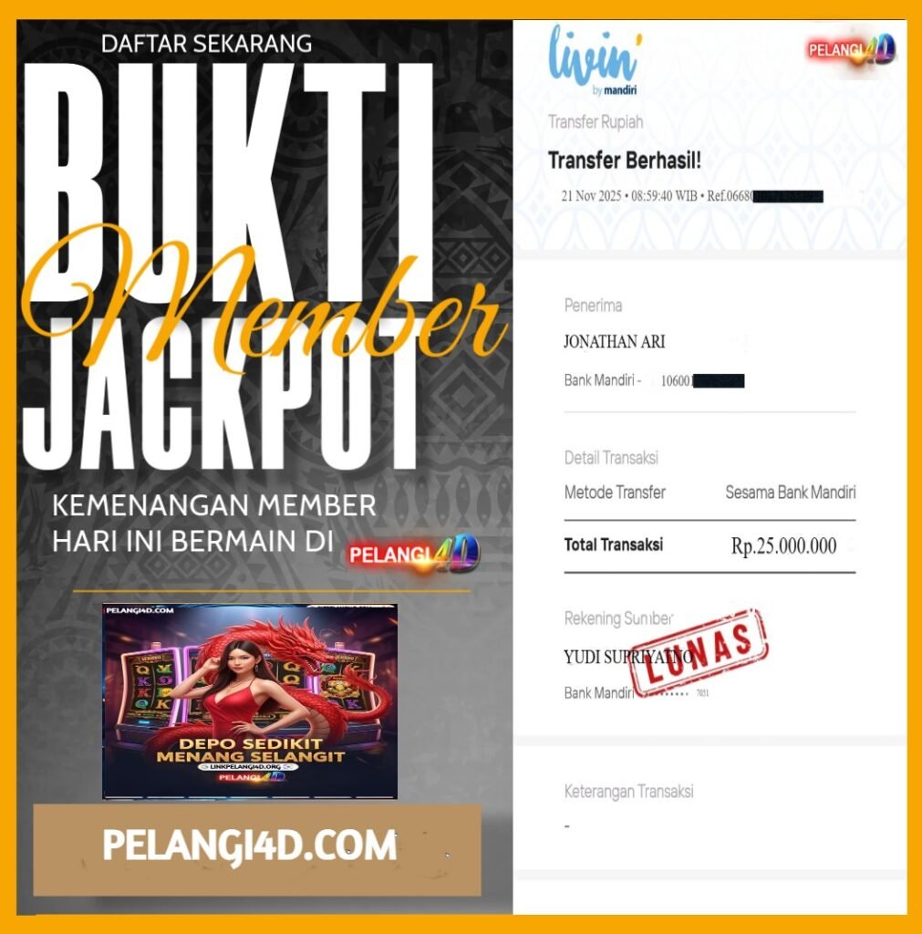 BUKTI KEMENANGAN JACKPOT BESAR MEMBER PELANGI4D HARI INI TANGGAL 21 NOVEMBER 2025