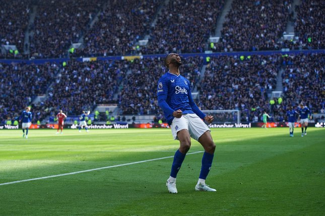 Selebrasi Beto dalam laga Everton vs Liverpool di Premier League 2025/2026, Minggu (19/4/2026). (c) AP Photo/Ian Hodgson