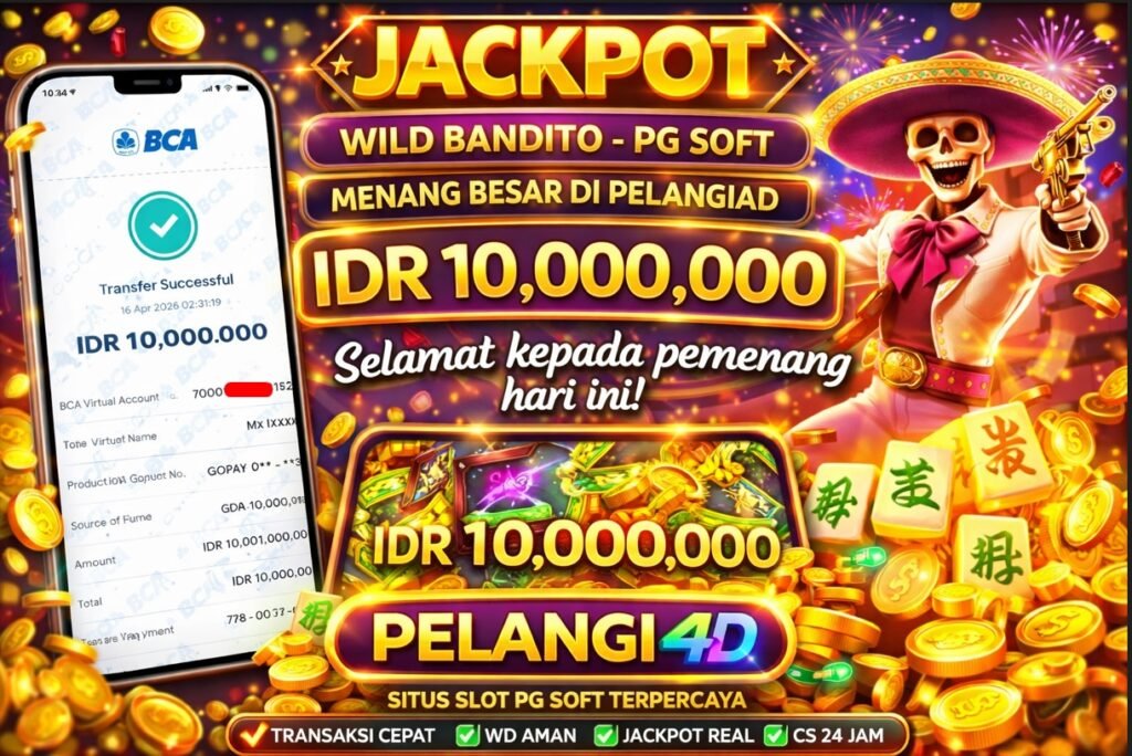 PELANGI4D – PELANGI4D Jackpot Wild Bandito Tembus Sepuluh Juta. Kemenangan kembali diraih oleh salah satu pemain slot online melalui permainan Wild Bandito. Dalam sesi permainan yang berlangsung singkat, pemain tersebut berhasil mengamankan jackpot sebesar Rp10.000.000 yang langsung berhasil dicairkan ke rekening tujuan tanpa kendala.