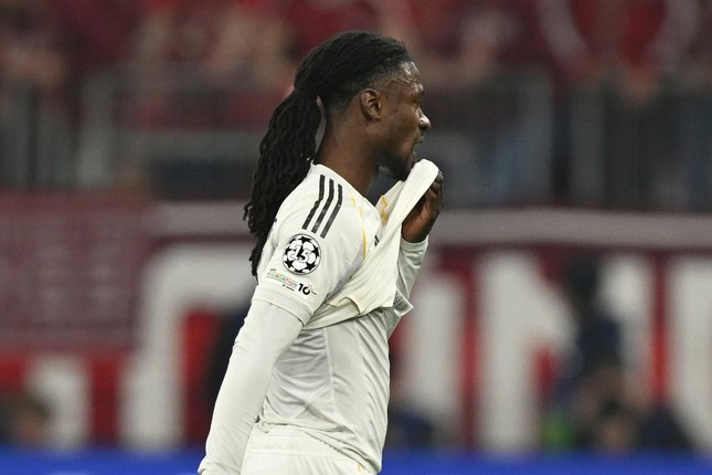 Eduardo Camavinga usai dikartu merah dalam laga Bayern Munchen vs Real Madrid di leg kedua perempat final Liga Champions 2025/2026, Kamis (16/4/2026). (c) AP Photo/Lennart Preiss